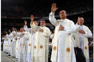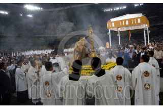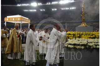 GUADALAJARA, JALISCO 10OCTUBRE2004.- En la cancha del estadio, se celebró la ceremonia inaugural del XLVIII Congreso Eucarístico Internacional, Josef Tomko, legado pontificio encabezó el evento litúrgico. FOTO: Germán Romero/CUARTOSCURO.COM