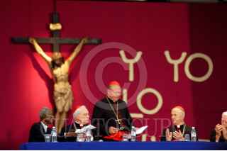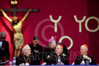 GUADALAJARA, JALISCO 11OCTUBRE2004.- En la Expo Guadalajara, se realizó la Asamblea Plenaria el XLVIII Congreso Eucaristico Internacional, con el discurso de bienvenida del cardenal Juan Sandoval Iñiguez. Los representantes continentales y el legado pontifio, Josef Tomko aplauden al prelado mexicano. FOTO: Germàn Romero/CUARTOSCURO.COM