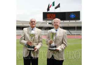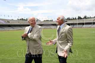 MÉXICO, D.F., 04AGOSTO2011.- José Narro Robles, rector de la Universidad Nacional Autónoma de México, y Víctor Mahbub, presidente del patronato de los PUMAS, asistieron a el estadio Olímpico Universitario para tomarse la foto oficial con el equipo de fútbol de los PUMAS, actual campeón de la liga mexicana. FOTO: CUARTOSCURO.COM