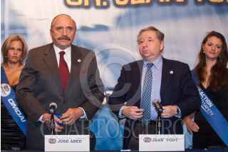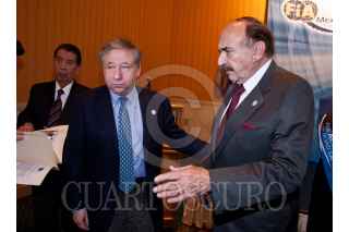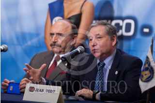 MÉXICO, D.F., 05AGOSTO2011.- Jean Todt y José Abed, presidente y vicepresidente de la Federación Internacional de Automovilismo (FIA), aseguraron que la Fórmula Uno podría regresar a México en un futuro, durante una conferencia de prensa ofrecida en un hotel de la zona de Polanco. La Ciudad de México ha sido sede de 15 carreras de F1 entre 1963 y 1970 y entre 1986 y 1992. FOTO: ISAAC ESQUIVEL/CUARTOSCURO.COM