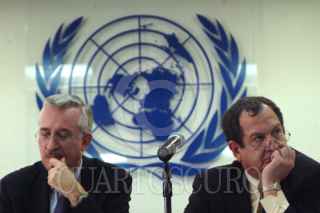 MEXICO, D.F. 11OCTUBRE2004.- La organización de las Naciones Unidas Para la Agricultura y la Alimentación (FAO) con sus representantes Antonio Sanchez Díaz (SEDESOL) y Norman Bellino (FAO) hablaron sobre la seguridad alimentaria en México. FOTO: Iván Stephens/CUARTOSCURO.COM