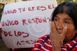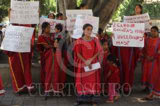 OAXACA, OAXACA, 06AGOSTO2011.- Integrantes del Movimiento Unificador de Lucha Triqui Independiente (MULTI) realizaron una protesta en el zócalo de la ciudad, esto por el homicidio de José Luis Ramírez Hernández, Francisco Ramírez Merino y Álvaro Jacinto Cruz, quienes fueron asesinados el día de ayer en la localidad de Agua Fría. Acusaron a las autoridades estatales de permitir la impunidad en la zona triqui y privilegiar a organizaciones rivales. FOTO: ARTURO PÉREZ ALFONSO/CUARTOSCURO.COM