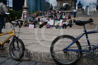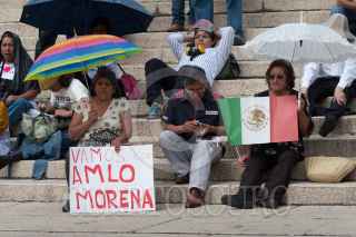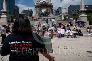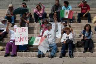 MÉXICO, D.F., 07JULIO2011.- Integrantes de la organización Flor y Canto simpatizantes del Movimiento de Regeneración Nacional (MORENA) realizaron una asamblea informativa sobre la elecciones del Estado México y rindieron un homenaje a los héroes de la independencia en las escalinatas de Ángel de la Independencia. FOTO: GUILLLERMO PEREA/CUARTOSCURO.COM