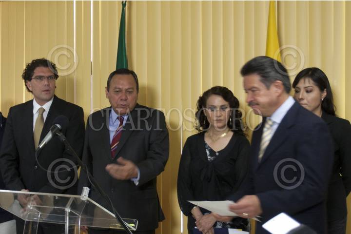 MÉXICO, D.F., 08AGOSTO2011.- Jesús Zambrano, Dirigente Nacional del PRD, acompañado de Dolores Padierna, Secretaria General de este partido, Armando Ríos Piter, Coordinador de la bancada del PRD en la Cámara de Diputados, Carlos Navarrete, Coordinador de la bancada del PRD, en el Senado de la Republica y Leticia Quezada, Diputada Federal de este partido, durante la conferencia ofrecida a los medios de comunicación en las instalaciones del CEN del PRD. FOTO: GUILLERMO PEREA/CUARTOSCURO.COM