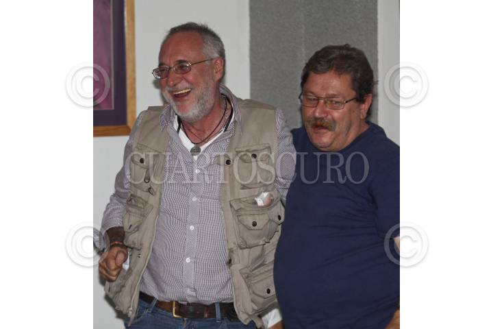 MÉXICO, D.F., 09AGOSTO2011.- El poeta Javier Sicilia quien encabeza el Movimiento por la Paz con Justicia se despide del actor Diego Luna durante una reunión de trabajo con la comunidad artística. FOTO: RODOLFO ANGULO/CUARTOSCURO.COM