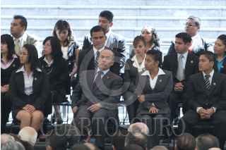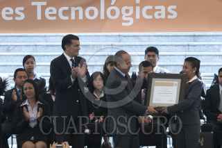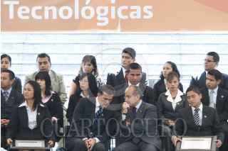 MÉXICO, D.F., 10AGOSTO2011.- Felipe Calderón Hinojosa, Presidente de México, acompañado de Alonso Lujambio, titular de la Secretaria de Educación Publica (SEP) encabezo la ceremonia de entrega de reconocimientos a la primera generación de Ingenieros del Subsistema de Universidades Tecnológicas, esto en el Museo Tecnológico de la Comisión Federal de Electricidad. FOTO: GUILLERMO PEREA/CUARTOSCURO.COM