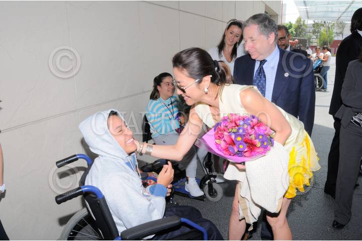 MÉXICO, D.F., 10AGOSTO2011.- Jean Todt, presidente de la Federacón Internacional de Automovilismo y su esposa, Michelle Yeoh, embajadora de la Década de Acción para la Seguridad Víal animan a un menor que recibe terapia en la "caminadora" del Centro de Rehabilitación Teletón sede Tlalnepantla. La visita tiene como fin estrechar la realciones entre instituciones que buscan el bienestar de la salud infantil. FOTO: FRANCISCO RODRÍGUEZ/CUARTOSCURO.COM
