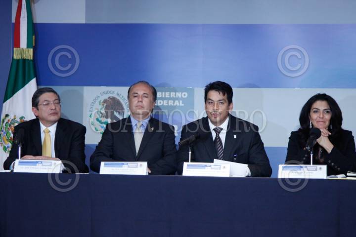 MÉXICO, D.F., 11AGOSTO2011.- José Enrique Girón, Luis Gárate, José Luis Cuitláhuac Salinas y Adriana Cuevas, tomaron protesta a los 24 nuevos delegados de la Procuraduría General de la República, PGR, 21 de los cuales cubrirán las plazas que dejaron vacantes igual número de funcionarios que renunciaron en forma masiva el pasado 21 de julio. FOTO: IVÁN STEPHENS/CUARTOSCURO.COM