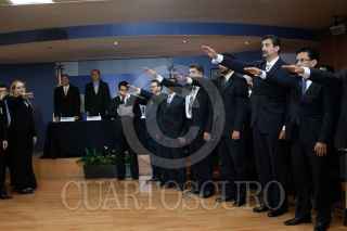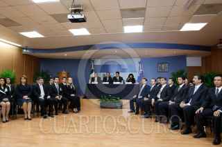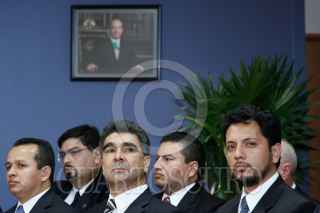 MÉXICO, D.F., 11AGOSTO2011.- José Enrique Girón, Luis Gárate, José Luis Cuitláhuac Salinas y Adriana Cuevas, tomaron protesta a los 24 nuevos delegados de la Procuraduría General de la República, PGR, 21 de los cuales cubrirán las plazas que dejaron vacantes igual número de funcionarios que renunciaron en forma masiva el pasado 21 de julio. FOTO: IVÁN STEPHENS/CUARTOSCURO.COM