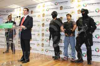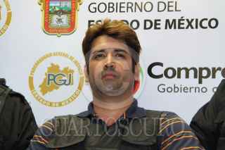 TOLUCA, ESTADO DE MÉXICO, 11AGOSTO2011.-Óscar Osvaldo, de 36 años, identificado por la procuraduria del Estado de México como presunto líder de la organización delictiva "La mano con ojos" fue capturado la madrugada de este jueves en una vivienda de la delegación Tlalpan en el Distrito Federal. FOTO: IVAN MENDEZ/CUARTOSCURO.COM