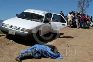 IXTAPALUCA, ESTADO DE MÉXICO, 11AGOSTO2011.- El chofer de un taxi Tsuru fue ejecutado con un disparo de arma de fuego 9 mm en el cuerpo, al parecer se debio a un presunto asalto en la calle Rey Icoac segunda sección en la colonia 6 de Junio del Municipio de Ixtapaluca. Al lugar, arribaron elementos periciales de este municipio para tomar conocimiento de los hechos y levantar el cadáver. FOTO: LUIS CARBAYO/CUARTOSCURO.COM