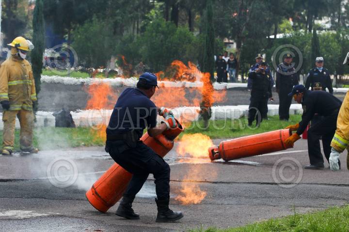 MÉXICO, D.F., 12AGOSTO2011.- Manuel Mondragón y Kalb Secretario de Seguridad Pùblica del Distrito Federal, acudió a la demostración del curso denominado PAP-1SSPDF, plan de auxilio y Protección a la Población en caso de desastre impartido por la unidad de protección civil de la dependencia. Dicho adiestramiento se realiza en las instalaciones de Fuerza de Tarea y se instruyen en primeros auxilios, protección civil evacuación de heridos y combate de incendios. FOTO: SAÚL LÓPEZ/CUARTOSCURO