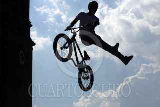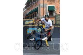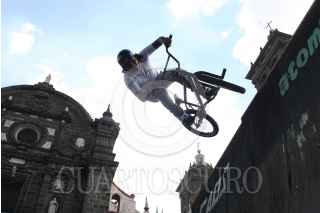 PUEBLA, PUEBLA, 12AGOSTO2011.- En el marco del Día Internacional de la Juventud, decenas de jóvenes realizaron una exhibición de bicicleta extrema, BMX en el zócalo de la ciudad. FOTO: FRANCISCO GUASCO/CUARTOSCURO.COM