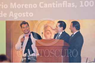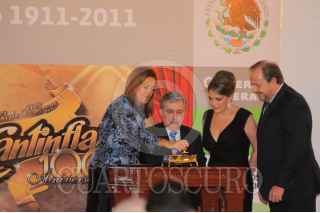 MÉXICO, D.F., 12AGOSTO2011.- Hoy se cumplen 100 años del nacimiento de Mario Moreno Cantinflas, con este motivo se canceló el timbre postal la tarde de hoy en el edificio de Correos donde participaron Margarita Zavala esposa del presidente Felipe Calderón, su hijo Mario Moreno Ivanova y la actriz Silvia Pinal. FOTO: FRANCISCO RODRÍGUEZ/CUARTOSCURO
