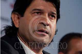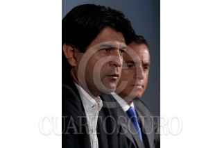QUERÉTARO, QUERÉTARO, 16AGOSTO2011.- José Saturnino Cardozo, distinguido ex-jugador del balonpié mexicano fue presentado por Ulises Zurita, presidente del Club de Futbol Querétaro, Gallos Blancos; como el nuevo director técnico del equipo de fútbol queretano de primera división. El nuevo director confirmó que su contrato es por un año. FOTO: DEMIAN CHÁVEZ/CUARTOSCURO.COM