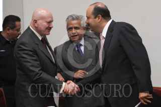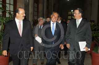 MÉXICO, D.F., 16AGOSTO2011.- César Horacio Duarte, gobernador de Chihuahua, Juan Miguel Alcántara Soria, titular del Sistema Nacional de Seguridad Pública (SNSP), Marco Adame, gobernador de Morelos y Marcelo Ebrard Casaubón, Jefe de Gobierno, anunciarón un decálogo de acciones para tratar de reducir los delitos de "alto impacto" en México, entre ellas la creación de un nuevo registro "biométrico para extranjeros" esto como una acción conjunta de la Comisión Nacional de Gobernadores (Conago). La cita fue en el Palacio del Ayuntamiento. FOTO: MOISÉS PABLO/CUARTOSCURO.COM
