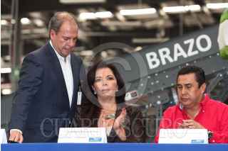 CHALCO, ESTADO DE MÉXICO, 16AGOSTO2011.- Mario Romero Lois, Vicepresiente de Logistica de Walmart México-Centroamerica, Carolina Monroy del Mazo, secretaria de Desarrollo Económico del Estado de México y Juan Manuel Carbajal Hernández,, presidente municipal de Chalco durante la inauguración del nuevo Sorter Centro y Distribución Walmart que tuvo una inversión mayor a los 150 millones de pesos y cuenta con la capacidad de atender a más de 500 proveedores y abastecer a 200 tiendas de Bodega Aurrera, Wal-Mart y Superama en los estados de Morelos, Oaxaca, Tlaxcala, Veracruz, Esrtado de México y Distrito Federal. FOTO: SAÚL LÓPEZ/CUARTOSCURO.COM