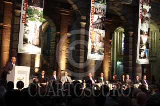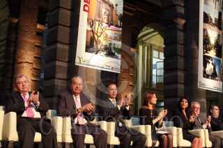 MÉXICO, D.F., 16AGOSTO2011.- Edgar Elías Azar, presidente del Tribunal Superior de Justicia del DF, Carlos Slim Helú, fundador del Grupo Carso, Marcelo Ebrard Casaubón, Jefe de Gobierno, Alejandra Barrales, presidenta del junta de gobierno de ALDF y Jacobo Zabludowsky, en la presentación del Plan Integral de Manejo del Centro Histórico de la Ciudad de México 2011-2016, en el Palacio de Minería. FOTO: IVÁN MENDEZ/CUARTOSCURO.COM