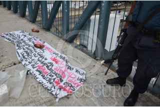 ACAPULCO, GUERRERO, 16AGOSTO2011.- Aparecen dos mantas con mensajes del crimen organizado acompañadas con restos humanos en distintos puntos del puerto como en la famosa garita y otra por la diana. FOTO: BERNANDINO HERNÁNDEZ/CUARTOSCURO.COM