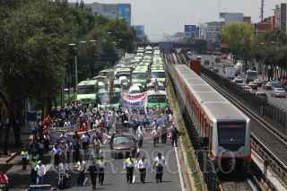 MÉXICO, D.F., 17AGOSTO2011.- Integrantes de diferentes rutas de transporte público, marcharon sobre Calzada de Tlalpan hacia el zócalo capitalino, lo que provocó severas afectaciones vehiculares, principalmete en la zona centro de la capital. FOTO: SAÚL LÓPEZ/CUARTOSCURO.COM