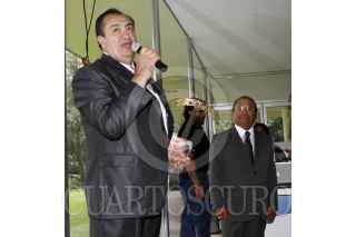 MÉXICO, D.F., 17AGOSTO2011.- Gustavo Alvite recibió de Armando Manzanero, presidente de la Sociedad de Autores y Compositores de México el reconocimiento y presea Gracias en la sede de la SACM. FOTO: RODOLFO ANGULO/CUARTOSCURO.COM