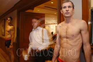 MEXICO D.F. 20OCTUBRE2004.- Dos modelos semidesnudos le daban la bienvenida a los periodistas que asistierón a la presentanción de la pelicula ¨Desnudos¨. FOTO: Germán Romero/CUARTOSCURO.COM