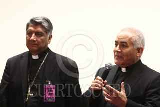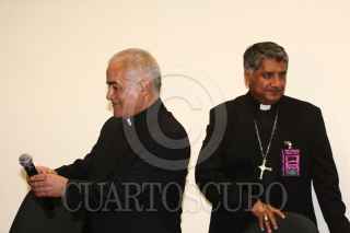 MÉXICO, D.F., 17AGOSTO2011.- Víctor Rene Rodríguez Gómez, obispo auxiliar de Texcoco y secretario general de la CEM junto con Manuel Corral, secretario técnico de la CEM, anunciaron la llegada de las reliquias del Beato Juan Pablo II a México. FOTO: SAÚL LÓPEZ/CUARTOSCURO.COM