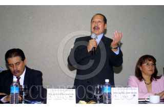 MEXICO D.F. 20OCTUBRE2004.- El líder nacional del PRD, Leonel Godoy, en reunión de trabajo con legisladores perredistas de los Congresos estatales para discutir el tema del Articulo 122. Lo acompaño la diputada Rosario Tapia. FOTO: Anette García/CUARTOSCURO.COM