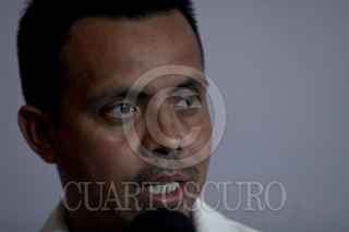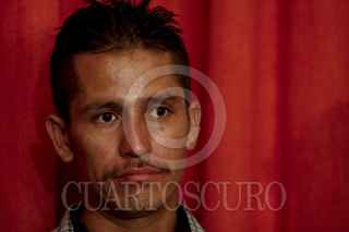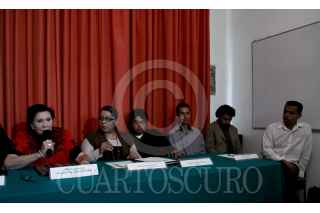 MÉXICO, D.F., 19AGOSTO2011.- Martha Sánchez, del Movimiento Migrante Mesoamericano; Nancy Pérez Garcia, de Sin Fronteras; Fabian Sanchez Matus, de Idheas; José Miguel Chavez, inmigrante centroamericano; Miguel Pulido y el reportero reportero Irineo Mejia durante una conferencia de prensa que se realizo en Cencos acerca del asesinato a pedradas del guatemalteco de 19 años Julio Fernandez Cardona Agustín en Tuititlan, Estado de México, después de haber sido detenido por policías municipales. FOTO: RODOLFO ANGULO/CUARTOSCURO.COM