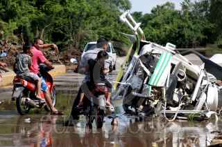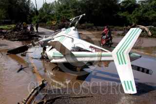 CULIACAN, SINALOA, 20AGOSTO2011.- Los restos del helicoptero de la secretaria de seguridad publica que se desplomo ayer todavía se encuentra en el lugar de los hechos, en el rio san Lorenzo sindicatura Quila, donde perdieron la vida un elemento de protección civil y la señora Lucia Mijares Murillo quien fue localizada horas después, los familiares se encuentran velando el cuerpo. FOTO: RASHIDE FRIAS/CUARTOSCURO.COM