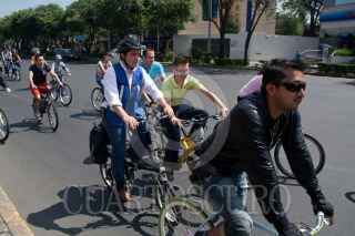 MÉXICO, D.F., 20AGOSTO2011.- Vecinos de la delegación Bénito Juárez, organizaron una rodada ciclista para concientizar a los automovilistas el respeto hacia ellos, en especial el derechos a ocupar un carril en las vialidades. FOTO: MOISÉS PABLO/CUARTOSCURO.COM
