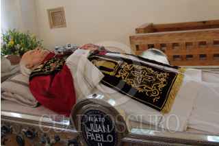 MÉXICO, D.F., 20AGOSTO2011.- Figura de cera de SS Juan Pablo II, que se encuentra en la nunciatura apostólica lugar en el que descansaba cada que venía de visita a México, donde permanecerán hasta el 25 de agosto cuando sean trasladadas a la Basílica de Guadalupe. FOTO: IVÁN MENDENZ/CUARTOSCURO.COM