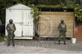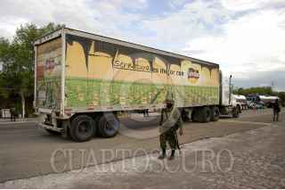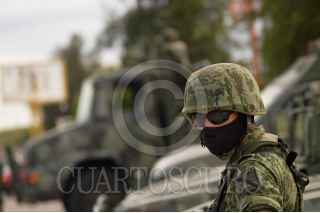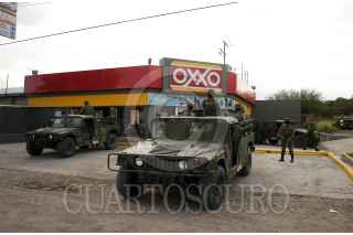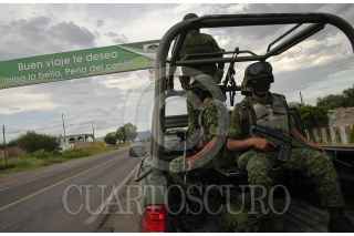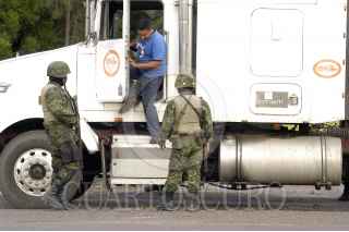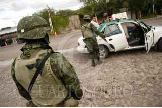 JALPA, ZACATECAS, 22AGOSTO2011.- Elementos del Ejército Mexicano realizan un reten en las entradas del municipio, minutos después de la persecución y enfrentamiento con presuntos miembros del crimen organizado en la comunidad de los Santiago y la carretera federal Zacatecas-Guadalajara. El saldo oficial del enfrentamiento fue de tres muertos, un efectivo militar y dos presuntos delincuentes. De acuerdo con el reporte levantado por la Procuraduría General de Justicia de Zacatecas, hay una persona detenida, que será puesta a disposición del Ministerio Público de la Federación. FOTO: CUARTOSCURO.COM