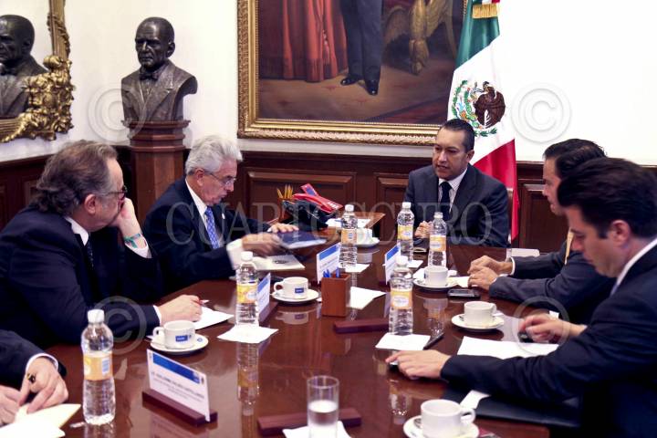 MÉXICO, D.F., 22AGOSTO2011.- Decio de María y Justino Compeán, secretario general y presidente de la Federación Mexicana de Fútbol (izquierda); Francisco Blake Mora, secretario de Gobernación (centro); Bernardo de la Garza, director general de la Comisión Nacional de Cultura Física y Deporte y Luis Cárdenas Palomino, coordinador de la División de Seguridad Regional de la Secretaría de Seguridad Pública Federal (derecha); se reunieron esta mañana en la sede de la Secretaría de Gobernación para dar seguimiento a los hechos suscitados el sábado pasado donde un grupo armado se enfrento a balazos con policías en las inmediaciones del Estadio Territorio Santos Modelo (TSM) lo que provocó crisis nerviosa entre los asistentes y la suspensión del partido Santos Monarcas. FOTO: ESPECIAL/CUARTOSCURO.COM