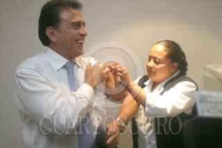 MEXICO D.F. 21OCTUBRE2004.- María Esther Sherman, después de que le fue puesta la vacuna contra la hepatitis B como parte de la campaña para prevenir enfermedades. Se llevó a cabo en la Cámara de Diputados. FOTO: Eunice Adorno/CUARTOSCURO.COM