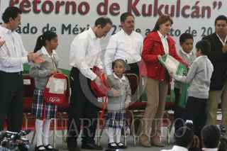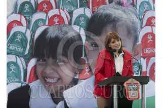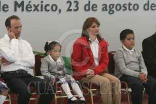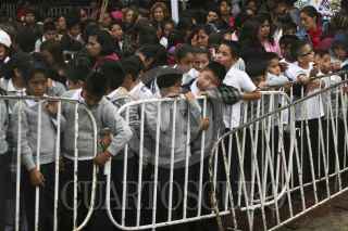 TEOTIHUACAN, ESTADO DE MÉXICO, 23AGOSTO2011.- Vallas de seguridad impiden que niños saluden a Angélica Rivera de Peña, esposa del gobernador Enrique Peña Nieto, durante un acto público en Teotihuacan donde acudió a entregar mochilas a estudiantes de educación básica. FOTO: SAÚL LÓPEZ/CUARTOSCURO.COM
