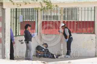 CIUDAD JUAREZ, CHIUAHUA, 24AGOSTO2011.- Este medio día madres de familia quedaron heridas por impacto de arma de fuego, después de que un comando armado asesinara a un joven menor de edad en las afueras de una escuela primaria ubicada en la colonia Anapra, ubicada en las calles Tonka y Puerto Anapra. Las primeras indagatorias indican que el joven estaría esperando a un familiar que saliera de la primaria al momento de ser atacado donde tres madres de familia se encontraban afuera de la escuela esperando a sus hijos. FOTO: NACHO RUIZ/CUARTOSCURO.COM