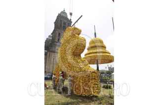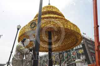 MÉXICO, D.F., 24AGOSTO2011.- Trabajadores del gobierno local trabajan arduamente en la colocación de adornos alusivos a las fiestas patrias que se festejarán en el mes de septiembre en el Zócalo capitalino. FOTO: MOISÉS PABLO/CUARTOSCURO.COM