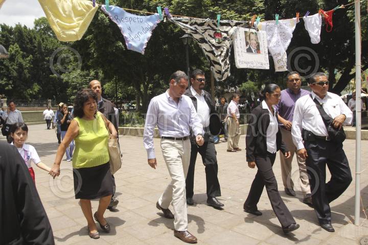 OAXACA, OAXACA, 24AGOSTO2011.- Los actores y conductores del programa televisivo Miembros al Aire, Mauricio Castillo y Jorge el "Burro" Van Rankin, los cuales presentan su show esta noche en la ciudad de Oaxaca, disfrutaron un recorrido por el centro histórico de la ciudad de Oaxaca. Durante su paseo se encontraron con el gobernador del Estado Gabino Cué a quien saludaron. FOTO: ARTURO PÉREZ ALFONSO/CUARTOSCURO.COM