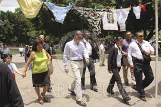 OAXACA, OAXACA, 24AGOSTO2011.- Los actores y conductores del programa televisivo Miembros al Aire, Mauricio Castillo y Jorge el "Burro" Van Rankin, los cuales presentan su show esta noche en la ciudad de Oaxaca, disfrutaron un recorrido por el centro histórico de la ciudad de Oaxaca. Durante su paseo se encontraron con el gobernador del Estado Gabino Cué a quien saludaron. FOTO: ARTURO PÉREZ ALFONSO/CUARTOSCURO.COM