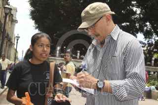 OAXACA, OAXACA, 24AGOSTO2011.- Los actores y conductores del programa televisivo Miembros al Aire, Mauricio Castillo y Jorge el "Burro" Van Rankin, los cuales presentan su show esta noche en la ciudad de Oaxaca, disfrutaron un recorrido por el centro histórico de la ciudad de Oaxaca. Durante su paseo se encontraron con el gobernador del Estado Gabino Cué a quien saludaron, tras lo cual se dieron el tiempo para atender a sus fans. FOTO: ARTURO PÉREZ ALFONSO/CUARTOSCURO.COM