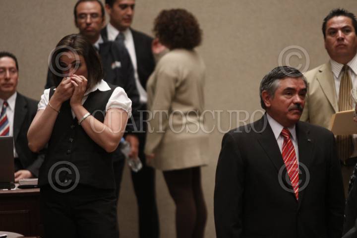 MÉXICO, D.F., 25AGOSTO2011.- Pablo Gómez, consejero del poder legislativo del PRD; y Leonardo Valdés Zurita, consejero presidente del Instituto Federal Electoral, durante la sesión del IFE. FOTO: IVÁN STEPHENS/CUARTOSCURO.COM
