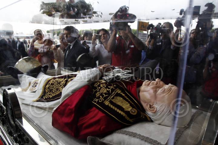 MÉXICO, D.F., 25AGOSTO2011.- Cientos de creyentes católicos acuden a observar las reliquias del Beato Juan Pablo II que arribaron esta mañana a la Basílica de Guadalupe, las cuales estarán a la vista de los creyentes hasta el domingo 28 de agosto, después iniciara un recorrido por varias partes del país. FOTO: RODOLFO ANGULO/CUARTOSCURO.COM