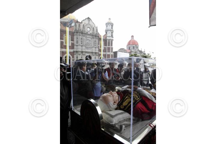 MÉXICO, D.F., 25AGOSTO2011.- Cientos de creyentes católicos acuden a observar las reliquias del Beato Juan Pablo II que arribaron esta mañana a la Basílica de Guadalupe, las cuales estarán a la vista de los creyentes hasta el domingo 28 de agosto, después iniciara un recorrido por varias partes del país. FOTO: RODOLFO ANGULO/CUARTOSCURO.COM