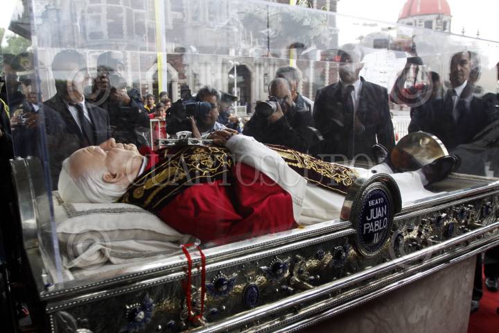 MÉXICO, D.F., 25AGOSTO2011.- Cientos de creyentes católicos acuden a observar las reliquias del Beato Juan Pablo II que arribaron esta mañana a la Basílica de Guadalupe, las cuales estarán a la vista de los creyentes hasta el domingo 28 de agosto, después iniciara un recorrido por varias partes del país. FOTO: RODOLFO ANGULO/CUARTOSCURO.COM