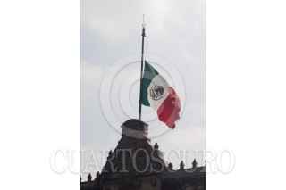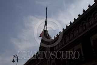 MÉXICO, D.F., 26AGOSTO2011.- La bandera que ondea arriba del Palacio Nacional lució a media asta en cumplimiento del duelo nacional que decretó el Presidente de México Felipe Calderón Hinojosa por tres días por el atentado al casino "Royale" en donde murieron 61 personas en la ciudad de Monterrery. FOTO: MOISÉS PABLO/CUARTOSCURO.COM