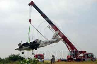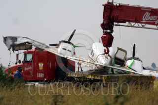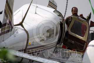 MONTERREY, NUEVO LEON 22OCTUBRE2004.- Una avioneta sufrió un despiste momentos antes de su despegue en el aeropuerto internacional de la ciudad. Misma que fue trasladada del lugar en un trailer. FOTO: Jorge López/CUARTOSCURO.COM
