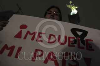 MÉXICO, D.F, 26AGOSTO2011.- Un grupo de personas entre niños, jóvenes y adultos, se manifestaron en la glorieta del Ángel de la Independencia para reprochar el ataque que sufrió el Casino Royal en Monterrey donde murieron mas de 50 personas civiles que en su mayoría eran mujeres por miembros del crimen organizado. En forma de luto por los acontecimientos que ha provocado la lucha contra el crimen organizado, mostraron pancartas y prendieron veladoras exigiendo al gobierno federal encabezado por Felipe Calderón, Presidente de México se acaben los actos violentos en el país. FOTO: ENRIQUE ORDÓÑEZ/CUARTOSCURO.COM