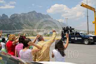 SANTA CATARINA, NUEVO LEÓN, 28AGOSTO2011.- Familias de Santa Catarina, saludan a los 1500 de policías federales que llegaron a la ciudad de Monterrey y área metropolitana para restablecer el orden publico. FOTO: SAÚL LÓPEZ/CUARTOSCURO.COM