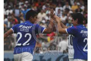 MÉXICO, D.F., 27AGOSTO2011.- Adrian Cortés festejó el gol con el cual el Cruz Azul doblegó dos goles a uno a los Pumas de la Universidad en el partido disputado en el Olímpico 68. FOTO: FRANCISCO RODRÍGUEZ /CUARTOSCURO.COM